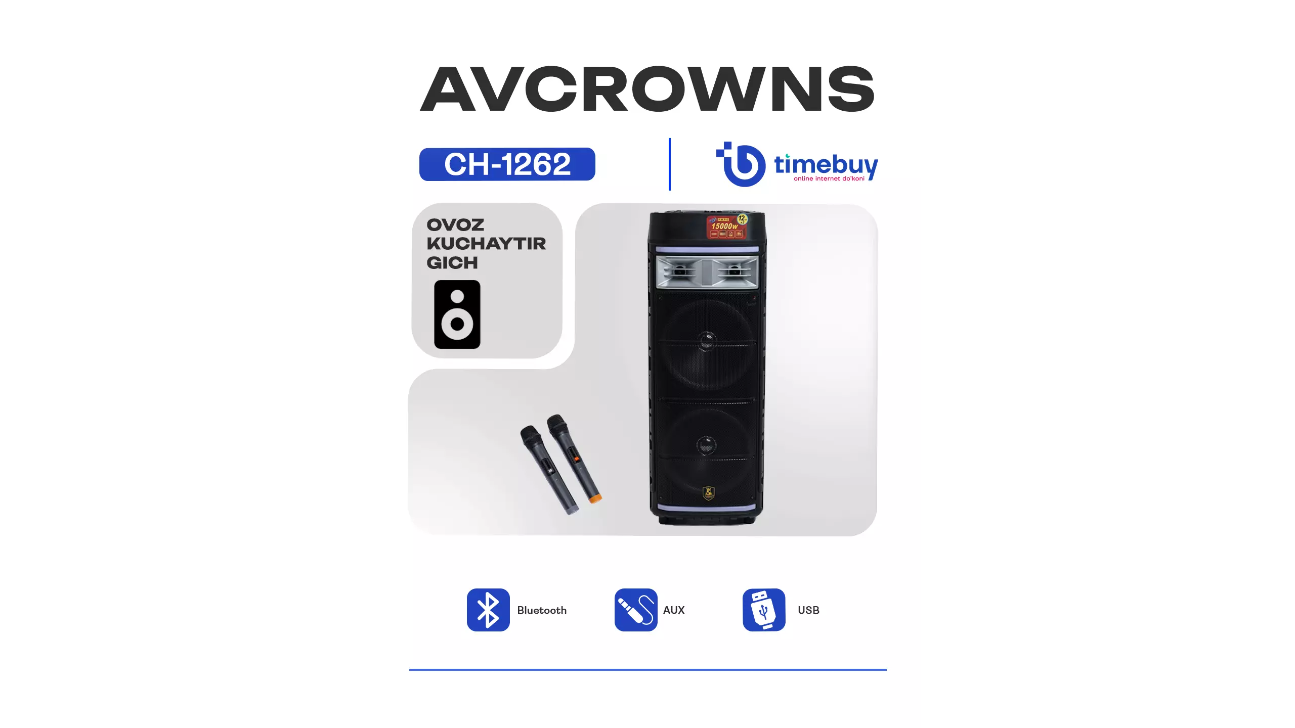 Акустическая система, Bluetooth колонка Avcrowns CH-1262, с 2 микрофонами, 107 см